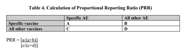 Lo que es increíblemente preocupante es lo indicado en la sección 2.3.1 de la página 16. Se muestra la fórmula para calcular el indicador PRR (Proportional Reporting Ratio), que servirá para analizar la seguridad/riesgo de la vacuna del COVID-19.